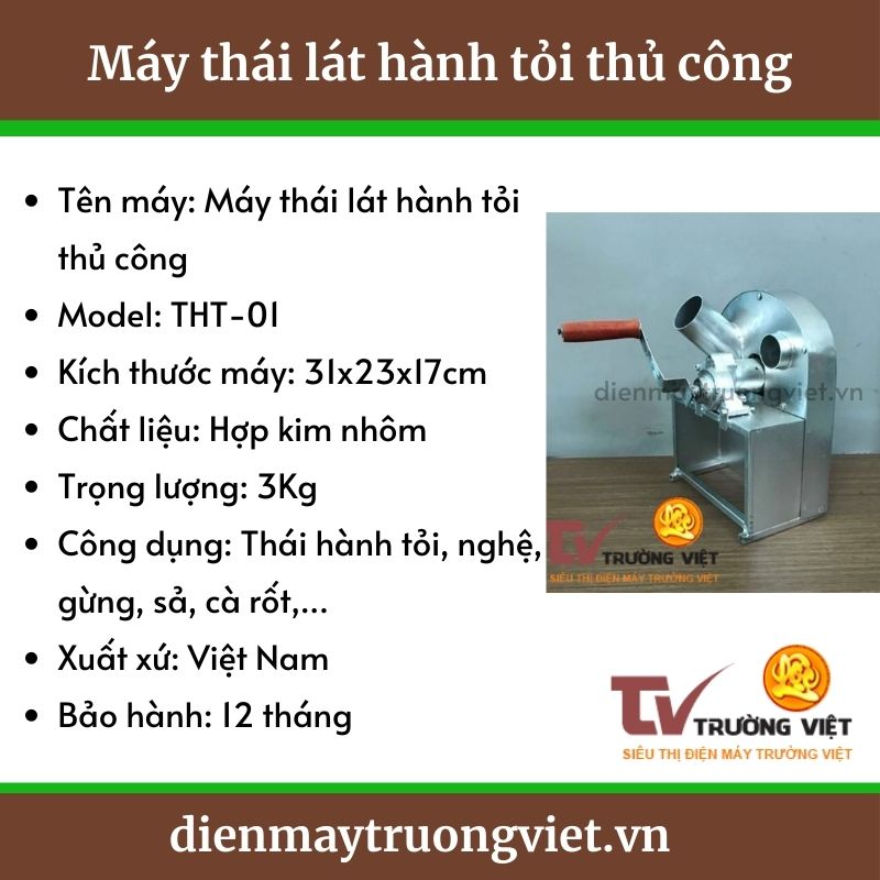 Thông số kỹ thuật máy thái hành hỏi thủ công